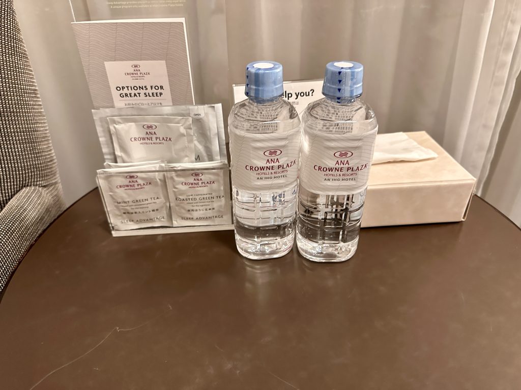 また、テーブルにお水2本と「スリープアメニティ」が用意されています。