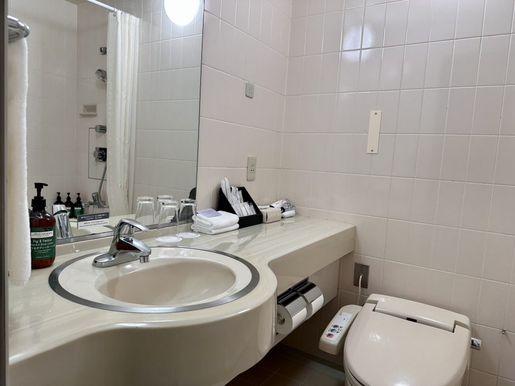 洗面台は広めなので、いろいろ物が置けて便利でアメニティ類も揃っています。