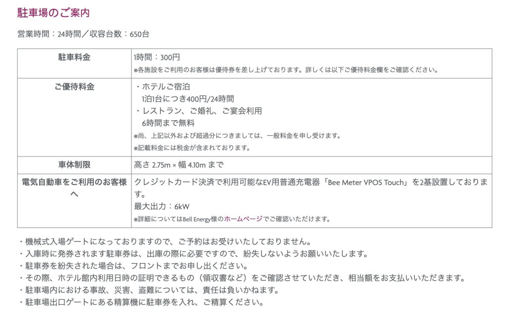 駐車場の利用料金は宿泊者は1泊400円なのでかなりリーズナブルですが、あのあたりの駐車料金の
