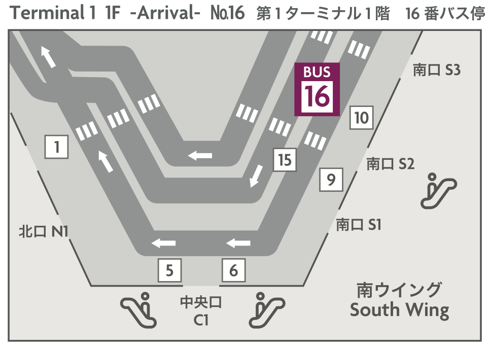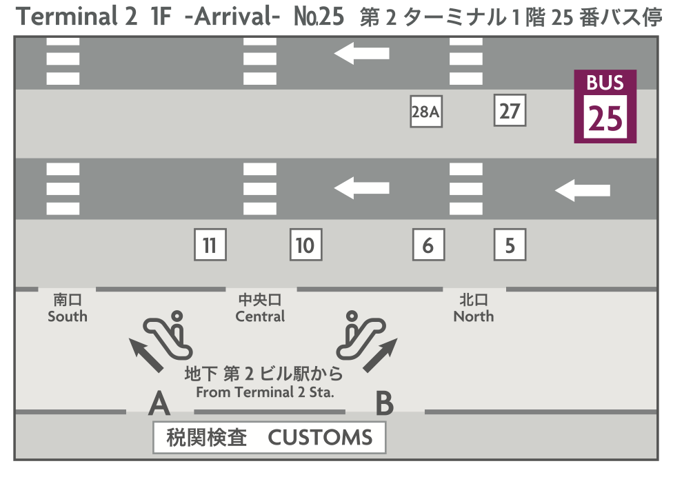 バス・電車利用の場合は第2ターミナル乗降り場所が便利みたいです。