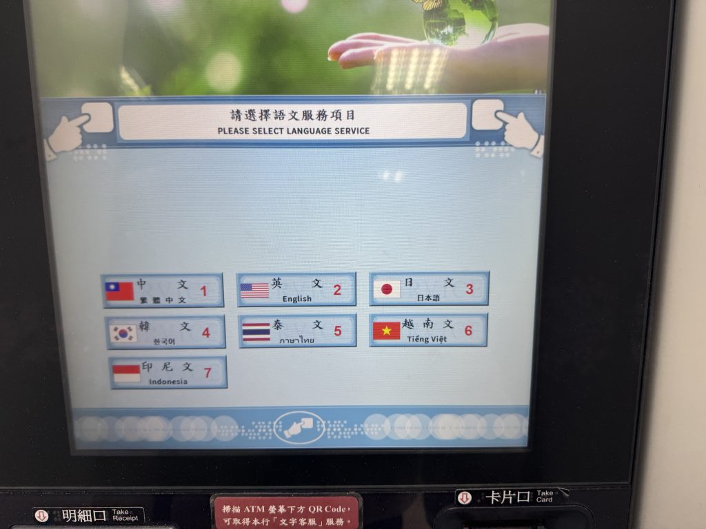 こちらの機械、言語が選べます!いつも利用していた「國泰世華銀行」は日本語の選択できなかったので