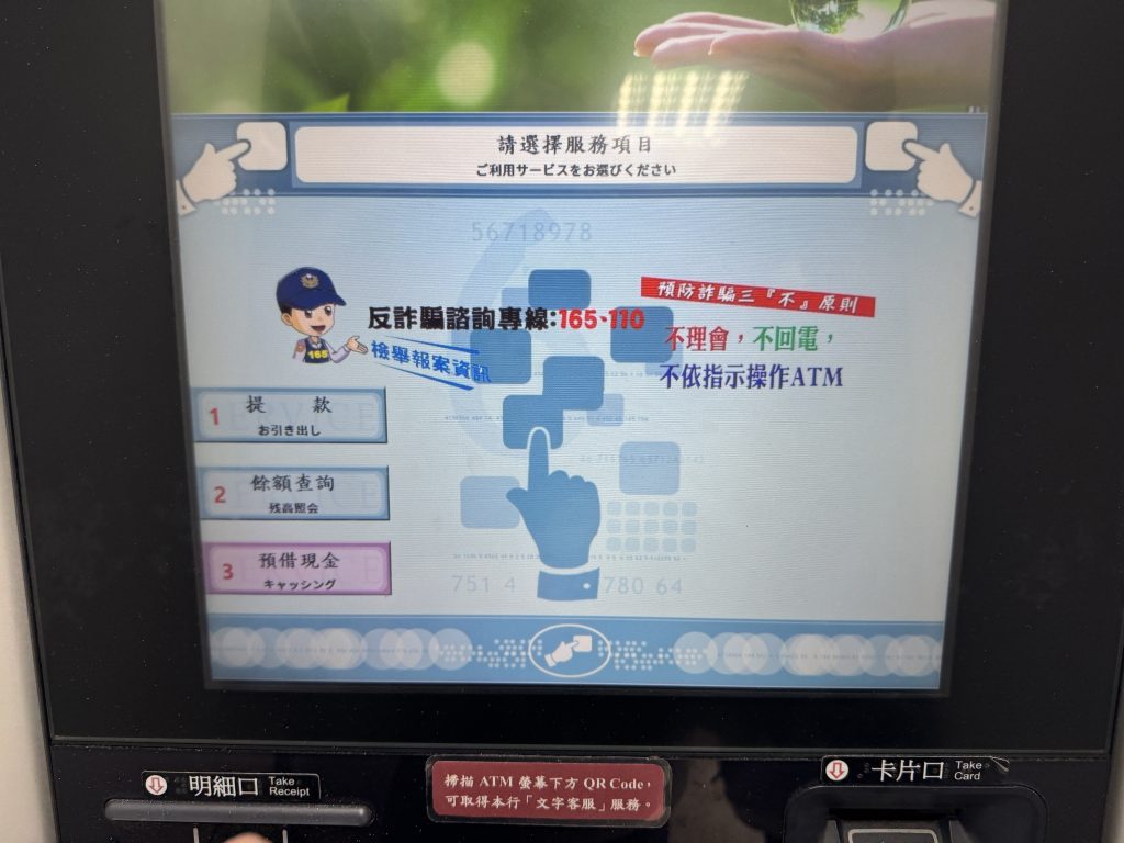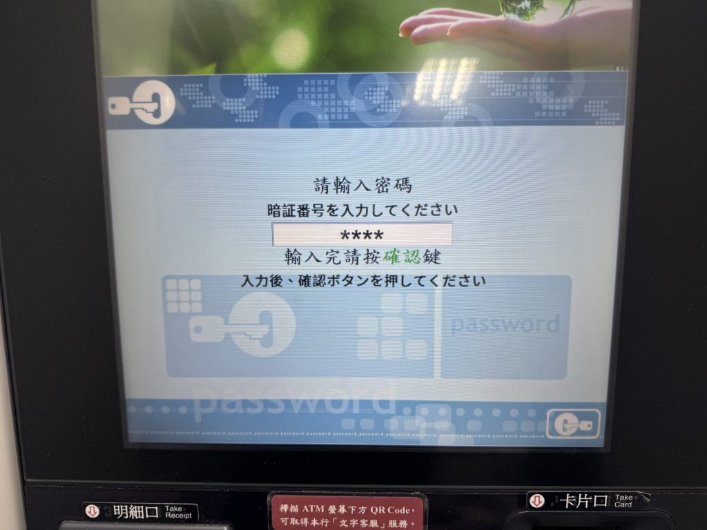 場所:台湾銀行内のATM(日本語対応あり)