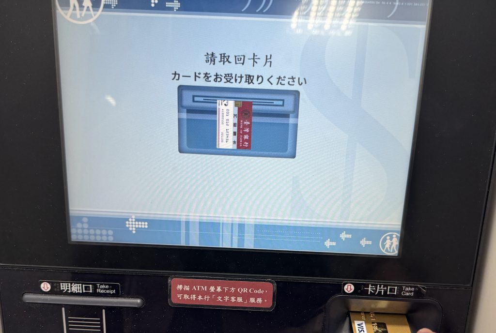 この後近くにある「台湾銀行」のATMにて無事手数料なしでキャッシングしてきました。